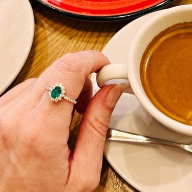 Em ouro branco 18k com brilhantes e esmeralda colombiana